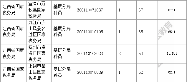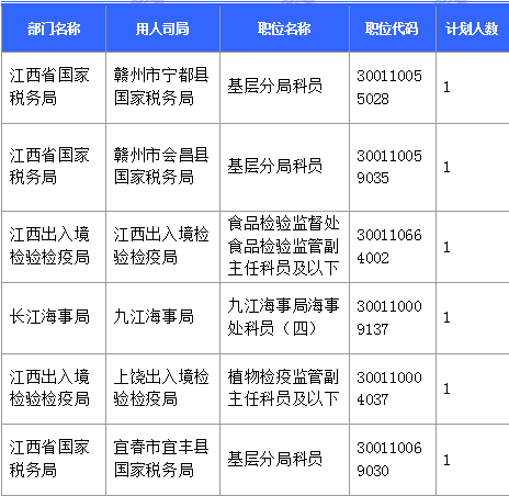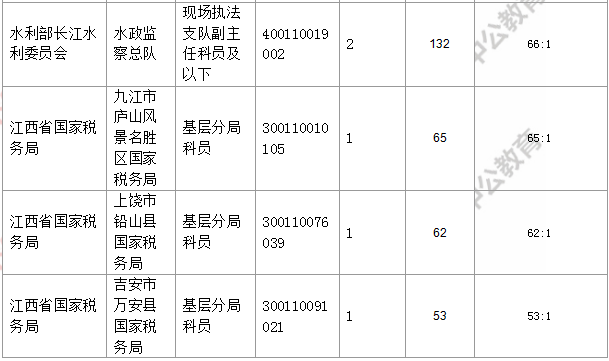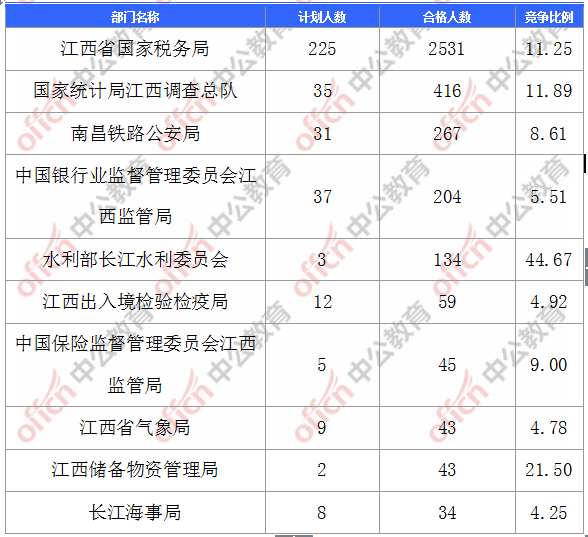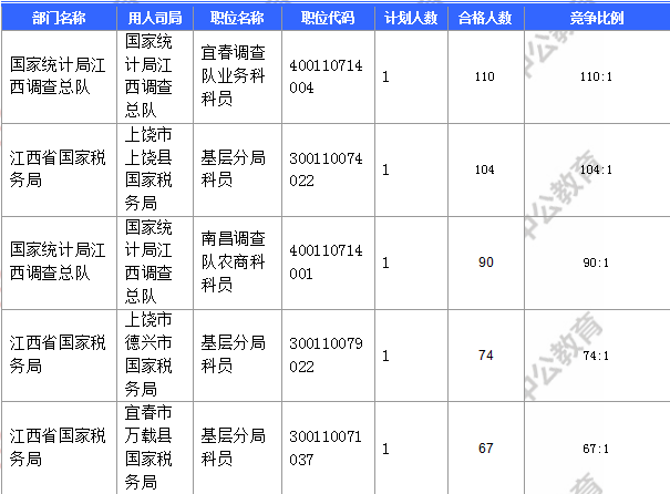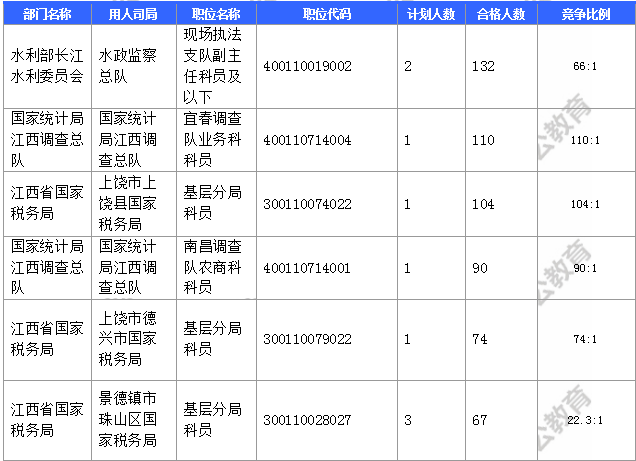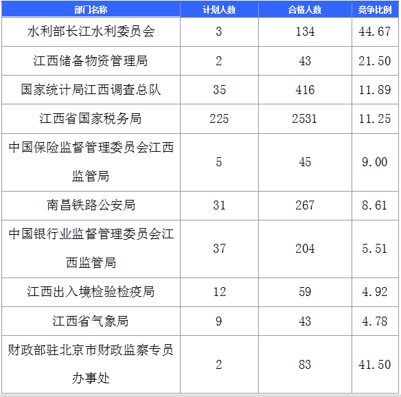 報名通過審核人數(shù)前十的職位主要集中在江西省國家稅務(wù)局、國家統(tǒng)計局江西調(diào)查總隊、水利部長江水利委員會等部門,具體信息如下: