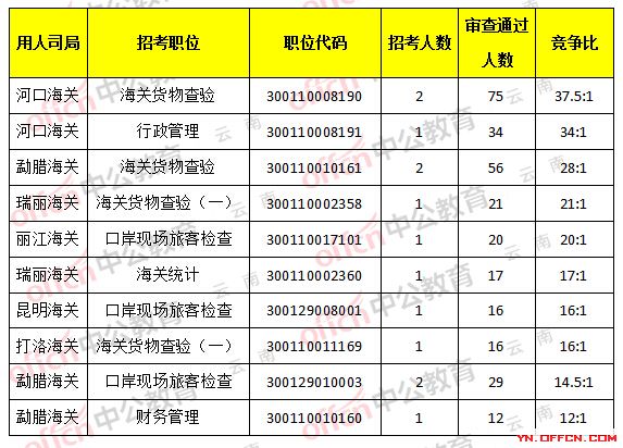 海關(guān)競爭前十的職位