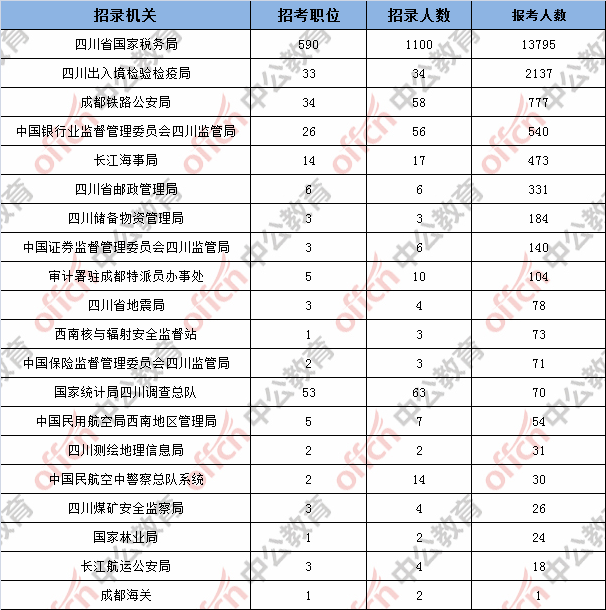 [3日16時(shí)]2018國(guó)考報(bào)名統(tǒng)計(jì):四川地區(qū)18957人過(guò)審,最熱職位453:1