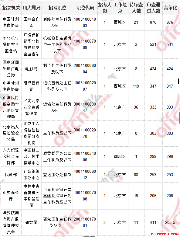 2018國(guó)考北京地區(qū)過審人數(shù)最多十大職位