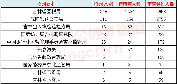 截至2017年11月3日16:00時吉林地區(qū)2018國考報名人數(shù)最多的前三個部門依次是。三大部門審核 通過總?cè)藬?shù)為 占審核通過總?cè)藬?shù)的