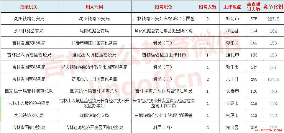 報名競爭最激烈前十職位