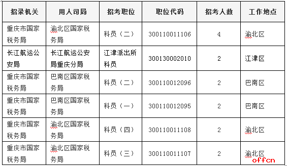 截止到11月3日16時,工作地點在重慶的職位共有18個無人報考,占全部職位的7.6%。下面是無人報考職位招錄人數(shù)較多的職位一覽表,中公網(wǎng)校專家建議廣大考生多關(guān)注一些較冷職位,避免激烈競爭,結(jié)合自身條件,找到屬于自己的職位。