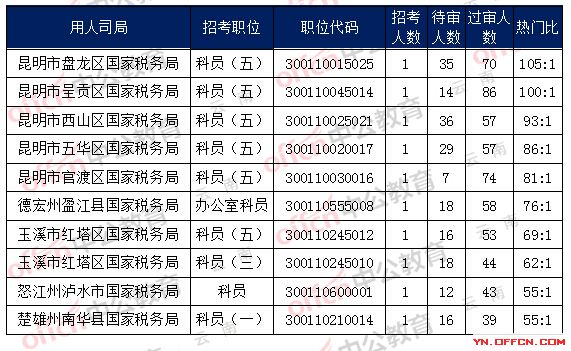 二、截止11月3日16時,2018國家公務(wù)員考試云南省國家稅務(wù)局23個職位無人報考,占全部國稅職位的3.29%。點擊查看無人報考崗位