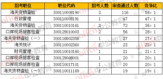 海關(guān)競爭前十的職位
