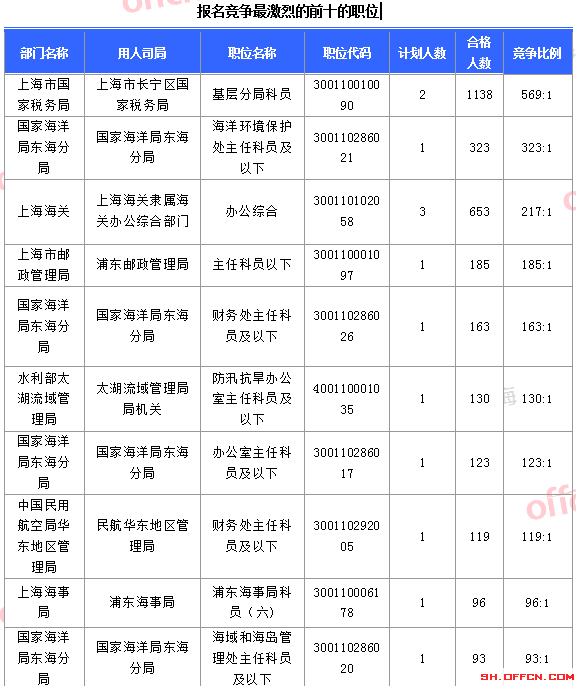 [4日9時(shí)]2018國考報(bào)名數(shù)據(jù):上海10537人過審 最熱職位569:1