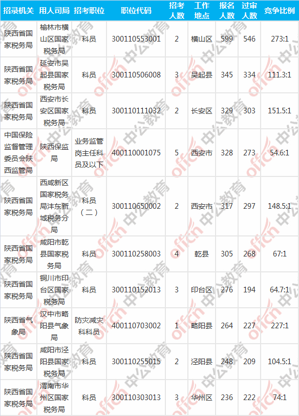 陜西國考報名人數(shù)前十的職位