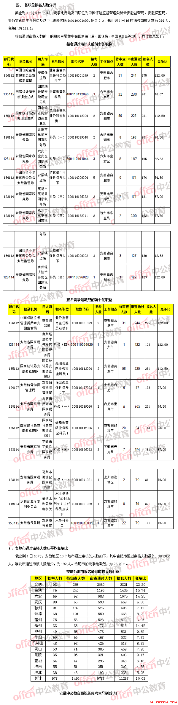 【11月4日16時】2018國考報名人數(shù)統(tǒng)計:安徽9787人通過審核,最熱職位122:1