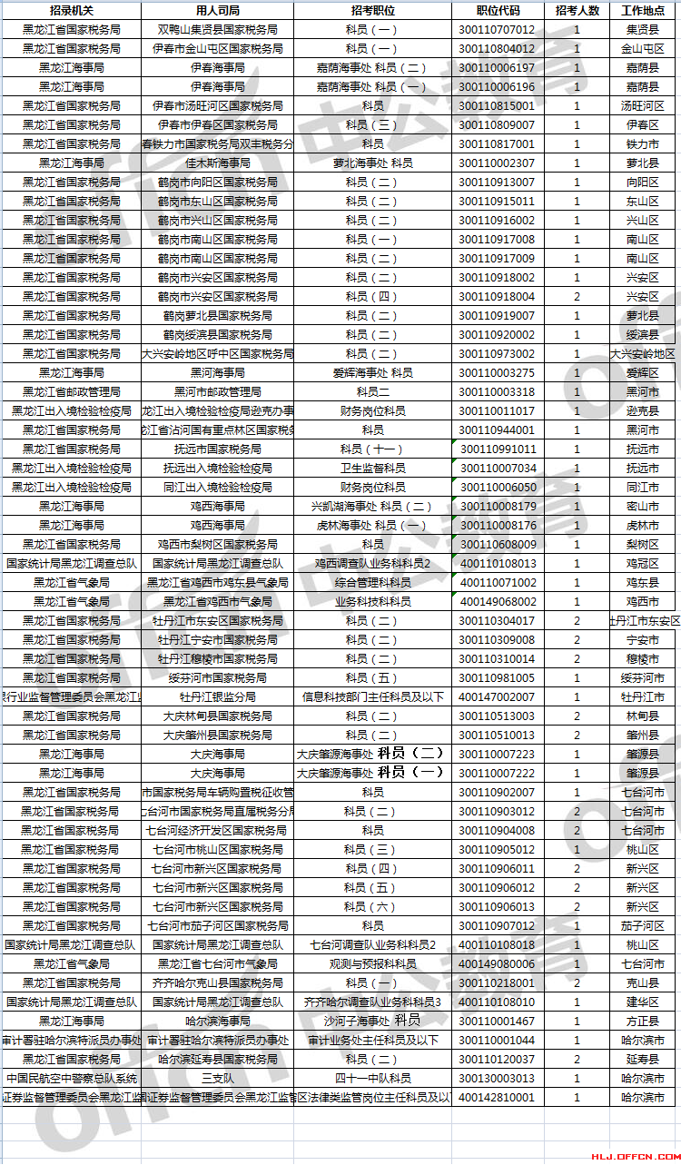 2018國(guó)家公務(wù)員考試報(bào)名時(shí)間已經(jīng)公布,報(bào)名時(shí)間為10月30日至11月8日,筆試時(shí)間為12月10日。報(bào)名已經(jīng)進(jìn)入第五天,截止4日16時(shí),有57個(gè)職位無(wú)人通過(guò)審核,對(duì)此,中公網(wǎng)校為考生準(zhǔn)備了黑龍江省2018國(guó)家公務(wù)員考試報(bào)名人數(shù)無(wú)人報(bào)考崗位,數(shù)據(jù)波動(dòng)比較大,以下信息僅供參考,具體報(bào)名人數(shù)以報(bào)名網(wǎng)站為準(zhǔn),考生可以收藏此頁(yè)面及時(shí)查看2018國(guó)考相關(guān)信息。