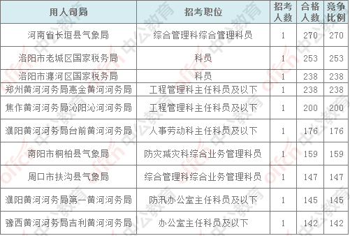 截止到11月4日16時(shí),競(jìng)爭(zhēng)比例的職位為河南省長(zhǎng)垣縣氣象局的綜合管理科綜合管理科員一職位,招錄1人,截止到11月4日16時(shí)通過人數(shù)為270人,仍有10個(gè)人還在審核中。