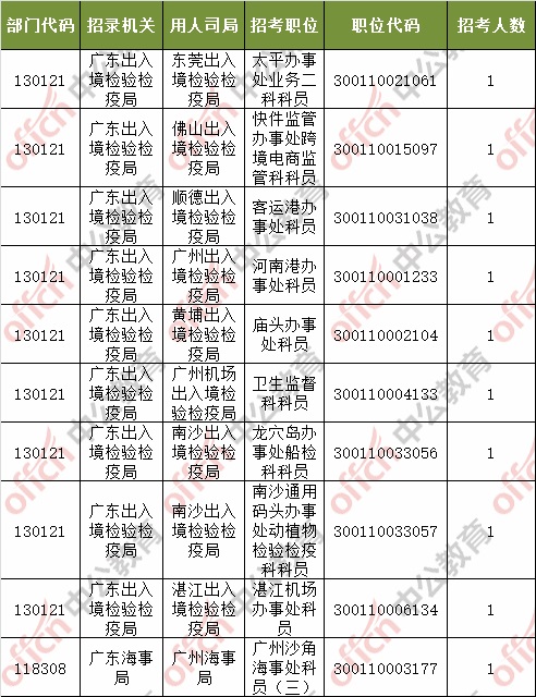 截止到4日16時(shí),工作地點(diǎn)在廣東的職位共有95個(gè)無(wú)人報(bào)考,占全部職位的7.2%。下面是無(wú)人報(bào)考職位一覽表,中公網(wǎng)校專家建議廣大考生多關(guān)注一些較冷職位,避免激烈競(jìng)爭(zhēng),結(jié)合自身?xiàng)l件,找到屬于自己的職位。
