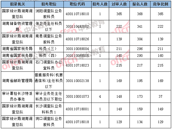湖南國考報(bào)名人數(shù)排名前十的職位