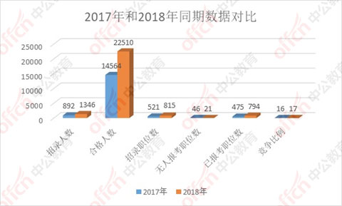 截至11月4日16時,據(jù)中公網(wǎng)校統(tǒng)計,2018國家公務(wù)員考試報名第六天,招錄職位中工作地點在湖北的職位報名總?cè)藬?shù)33738人,通過審核人數(shù)為22510人,比去年同期審核通過人數(shù)(14564人)增加7946人,815個職位中僅余21個職位無人報考,平均競爭比例為17:1。具體信息如下: