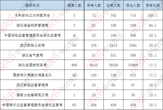 湖北報(bào)名通過審核人數(shù)前十的職位