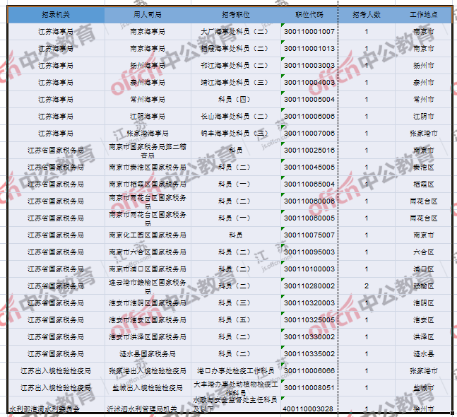 截止到3日16時(shí),工作地點(diǎn)在江蘇的職位共有23個(gè)無(wú)人報(bào)考,占全部職位的1.9%。下面是無(wú)人報(bào)考職位一覽表,中公網(wǎng)校專家建議廣大考生多關(guān)注一些較冷職位,避免激烈競(jìng)爭(zhēng),結(jié)合自身?xiàng)l件,找到屬于自己的職位。