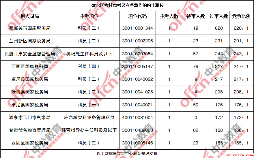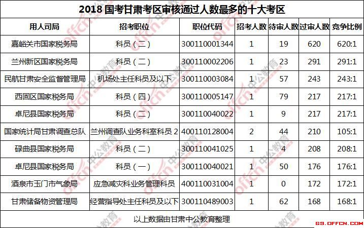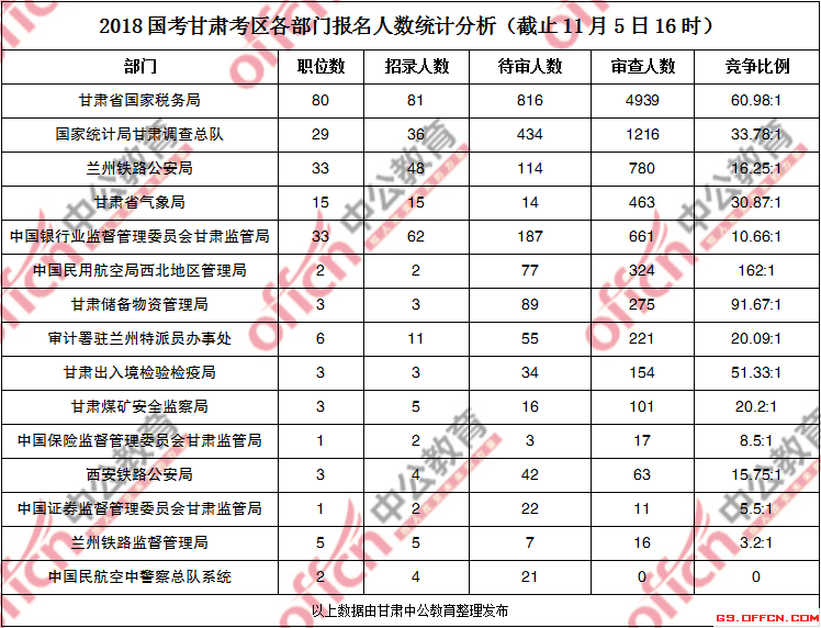 [11月5日16時]甘肅2018國考報名人數(shù)統(tǒng)計:過審9241人 最熱競爭比例620:1(2)
