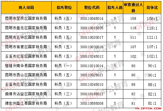 國(guó)考國(guó)稅競(jìng)爭(zhēng)前十的職位