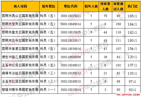 一、云南省國(guó)稅局職位報(bào)名人數(shù)分析