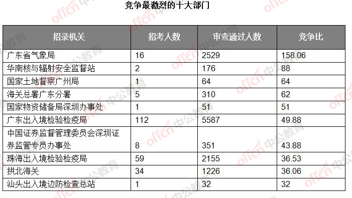 截止到5日16時(shí),通過(guò)審核人數(shù)前三位的部門依次是:廣東省國(guó)家稅務(wù)局、深圳海關(guān)、廣東出入境檢驗(yàn)檢疫局,三部門通過(guò)審核總?cè)藬?shù)達(dá)41752人,占通過(guò)審核總?cè)藬?shù)的60.0%。