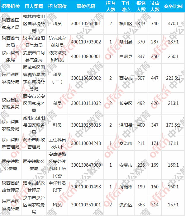 [6日9時(shí)]2018陜西國考報(bào)名人數(shù)統(tǒng)計(jì):陜西18098人過審 最熱職位370:1