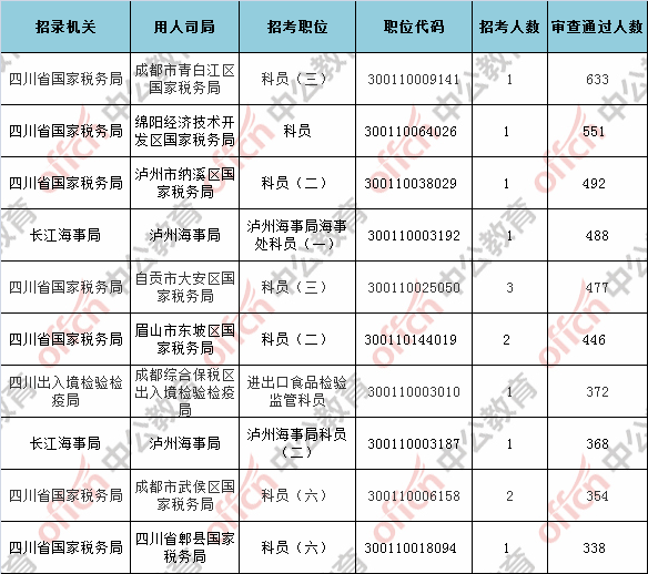 第五日報名通過審核人數(shù)前十的職位主要集四川省國家稅務(wù)局等部門,具體信息如下: