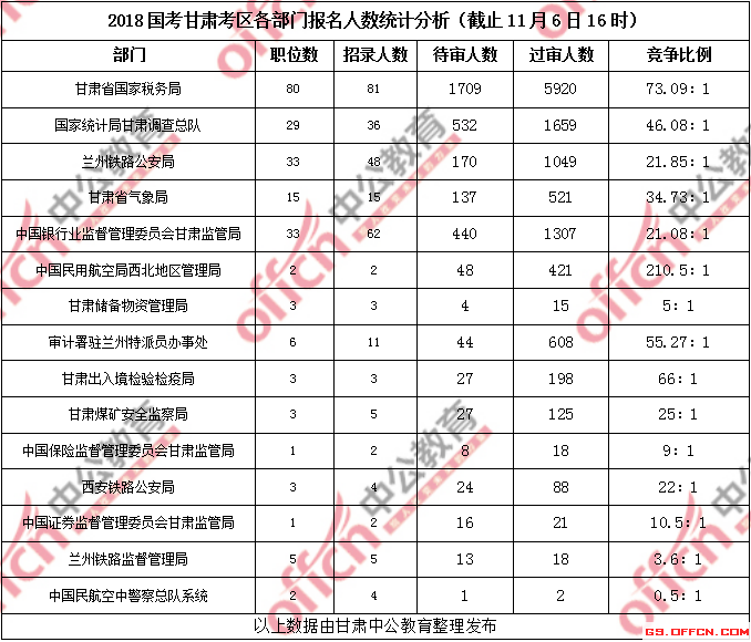 [11月6日16時(shí)]甘肅2018國(guó)考報(bào)名人數(shù)統(tǒng)計(jì):過審11970人 平均競(jìng)爭(zhēng)比例42.3:1