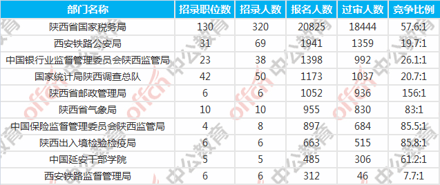 陜西國考報名人數(shù)最多的十大部門