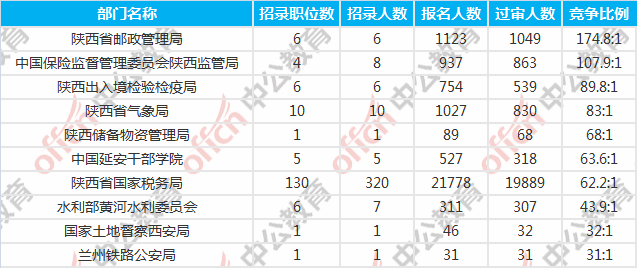 陜西國(guó)考報(bào)名人數(shù)最多的十大部門(mén)