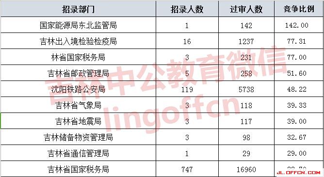 報(bào)名競(jìng)爭(zhēng)比例前十的部門(mén)