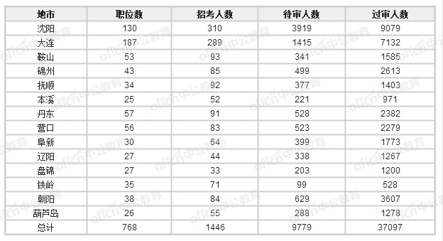 截至11月7日16時(shí):2018國考報(bào)名涉遼崗位通過審核人數(shù)達(dá)37097人,待審查人數(shù)為9779,21職位無人報(bào)考