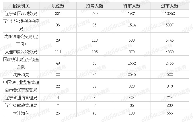 為幫助廣大考生更清晰的了解今日報名情況,中公網校整理了審核人數前十位的部門以及競爭比例最激烈的十大部門,供廣大考生參考: