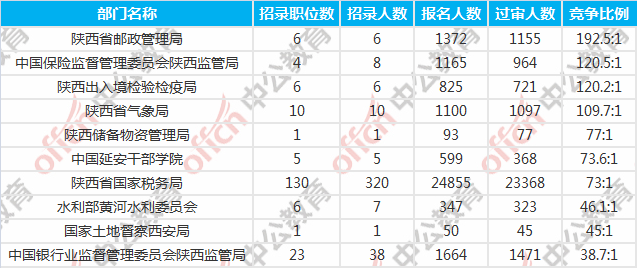 陜西國考報名競爭最激烈的十大部門