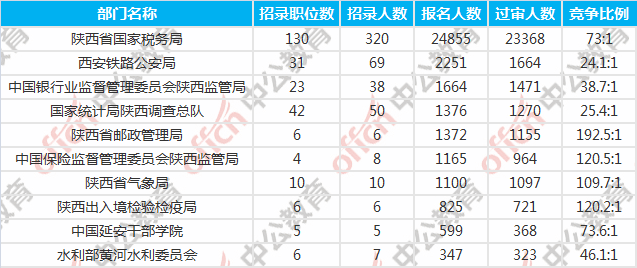 陜西國考報名人數(shù)最多的十大部門