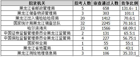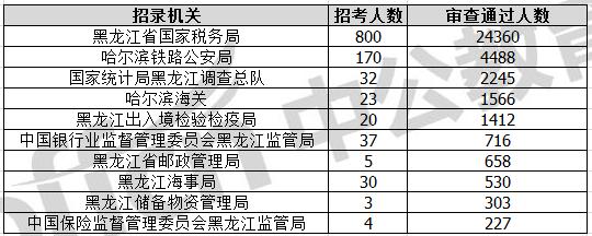 截止到11月8日16時,通過審核人數(shù)前三位的部門依次是:黑龍江省國家稅務(wù)局、哈爾濱鐵路公安局、國家統(tǒng)計局黑龍江調(diào)查總隊,三部門通過審核總?cè)藬?shù)達(dá)31093人,占通過審核總?cè)藬?shù)的83.44%。其中黑龍江省國稅局審核通過人數(shù),與去年同期相比增加了7165人。