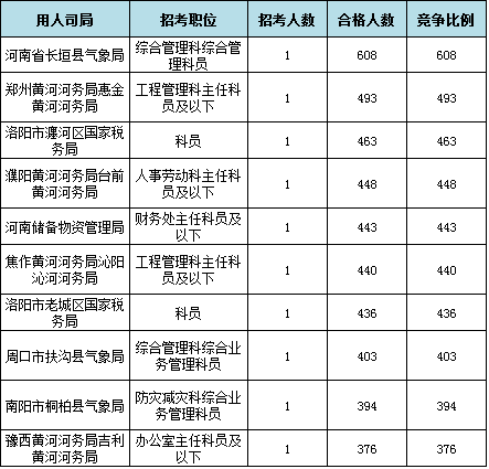 報名通過審核人數(shù)前十的職位主要集中在鄭州鐵路公安局、河南省氣象局、河南省國家稅務局,具體信息如下: