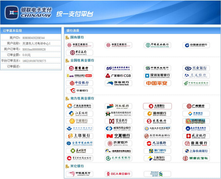 僅以天津市事業(yè)單位考試,中國銀行網上支付為例,演示網上繳費操作流程。