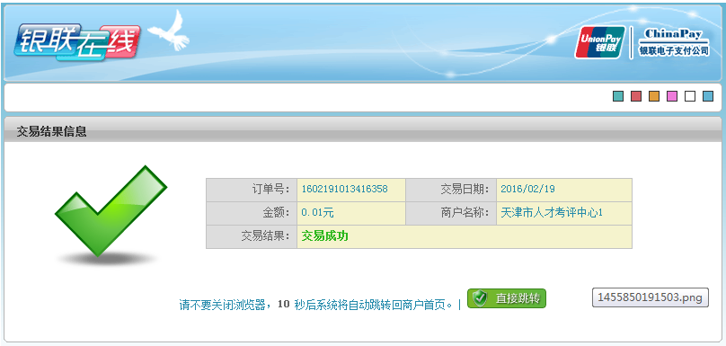然后點擊“確認繳費”按鈕進入銀聯(lián)交費頁面。