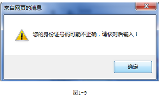 4、注冊時如果提示‘身份證號可能不正確’如圖1-9。請檢查輸入的身份號碼是否正確。