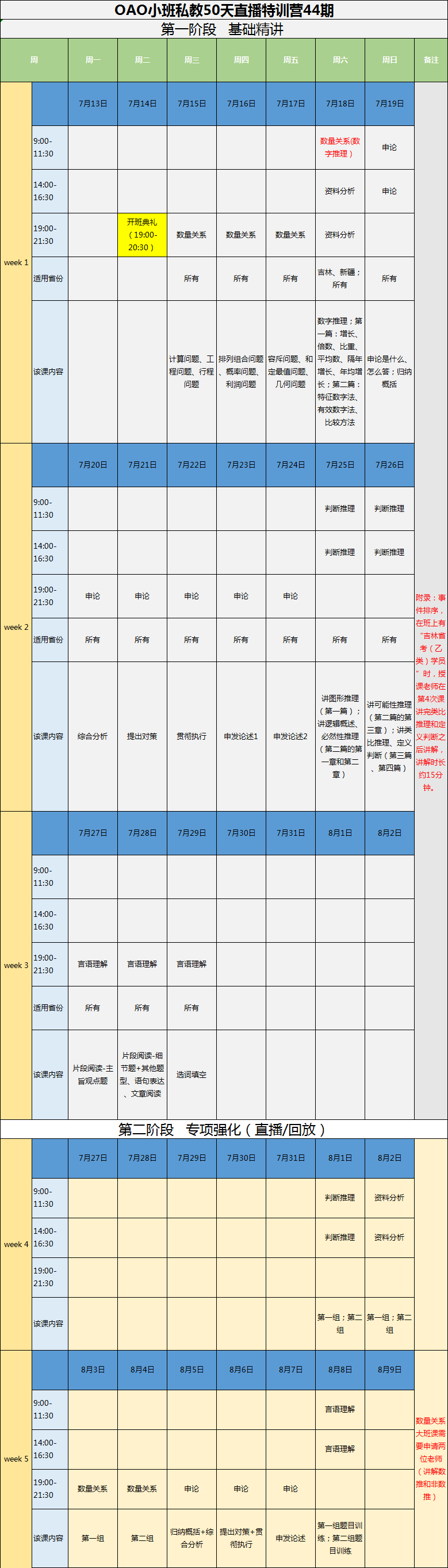 2020年省考小班、黃埔課表