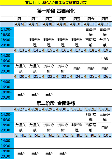 黃埔1+1小班OAO直播協(xié)議班直播課表4月7日開班