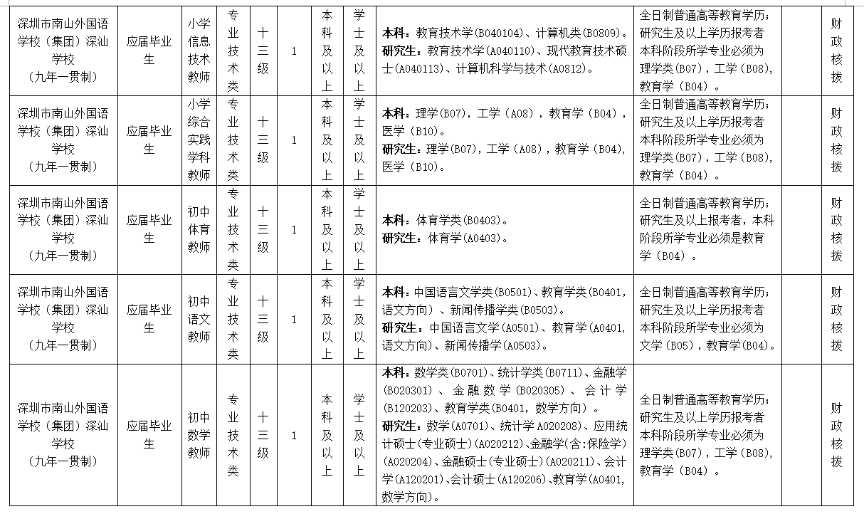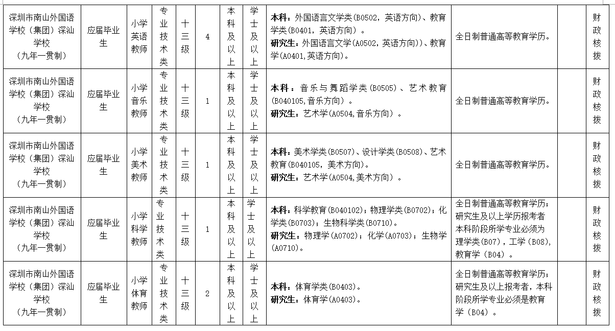 為進一步加強我區(qū)骨干教師隊伍建設,根據《廣東省事業(yè)單位公開招聘人員辦法》(廣東省人民政府令第139號),深圳市南山外國語學校()深汕學校(九年一貫制)招聘應屆畢業(yè)生34名,現將有關事項公告如下:
