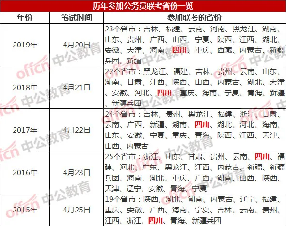 從表中可以看出近五年四川一直是是風(fēng)雨無阻的參加省考聯(lián)考,這意味著四川今年很大可能也會繼續(xù)參加聯(lián)考。