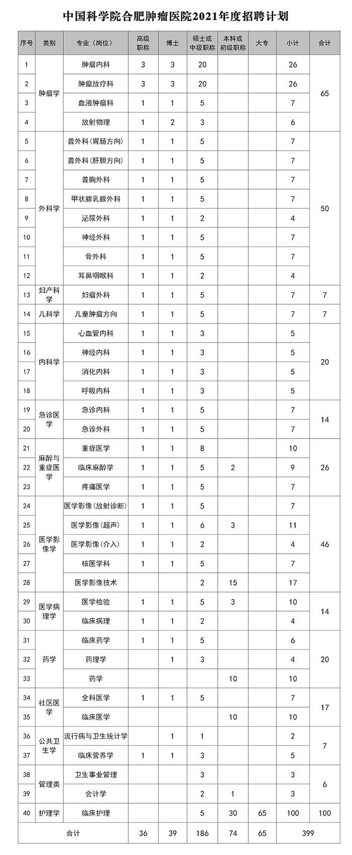 2021中國(guó)科學(xué)院合肥腫瘤醫(yī)院招聘399人公告