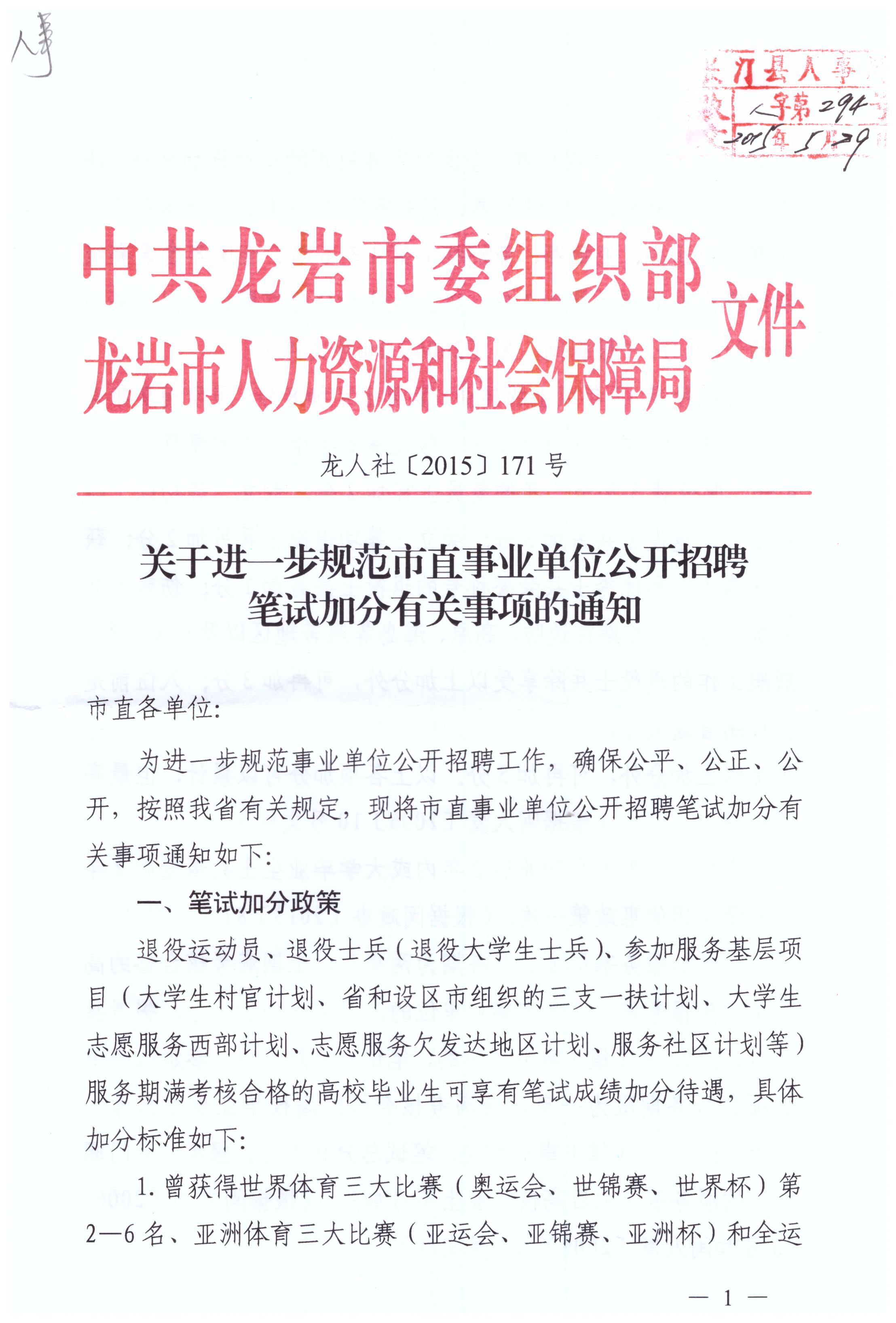 2015福建長汀縣市直事業(yè)單位招聘筆試加分有關(guān)事項(xiàng)通知