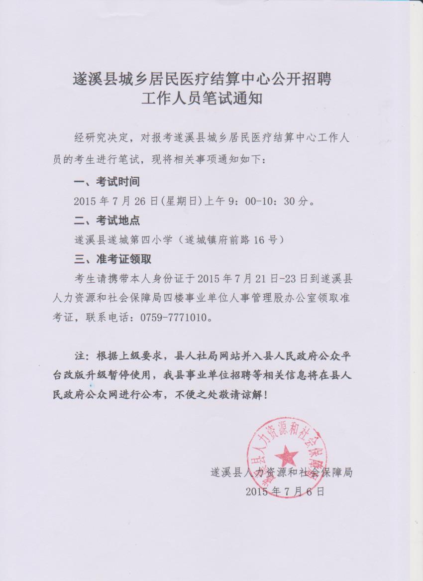 2015廣東遂溪縣城鄉(xiāng)居民醫(yī)療結(jié)算中心招聘筆試通知