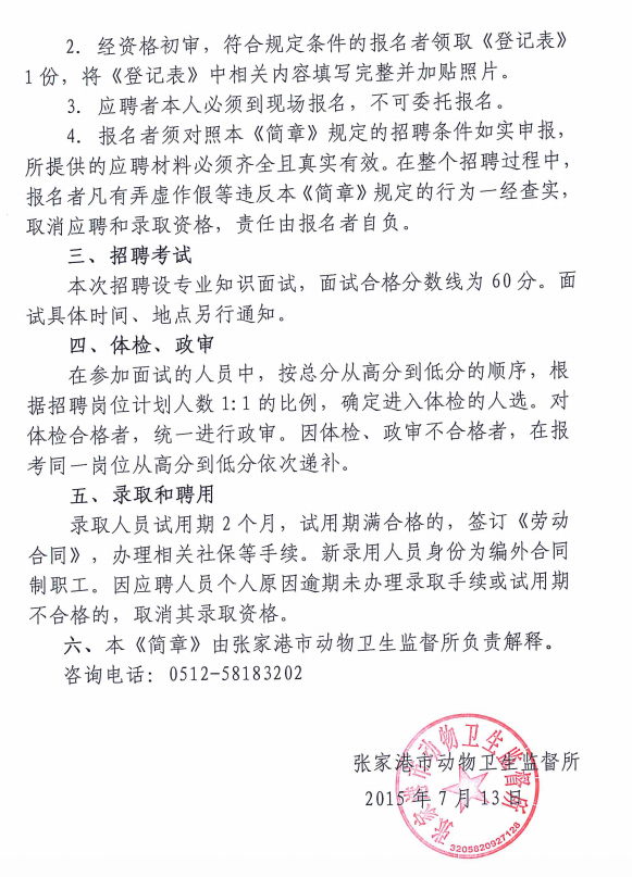 2015江蘇張家港市動物衛(wèi)生監(jiān)督所招聘公告【招2人】