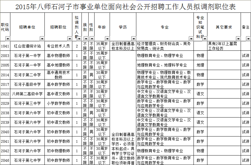 原標題:2015年八師石河子市事業(yè)單位面向社會公開招聘工作人員調劑工作通知