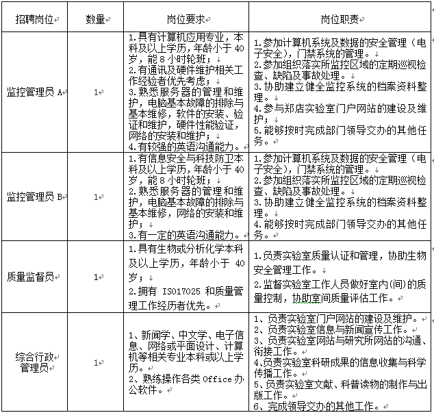 1.已獲得學(xué)位并有志于科研及支撐崗位的工作,有從業(yè)資格證書要求的崗位應(yīng)聘人員應(yīng)具備相應(yīng)資格證書;