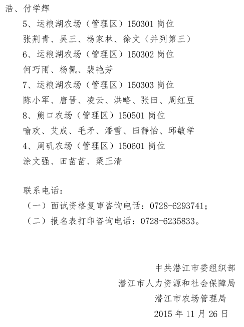 2015湖北潛江市招聘農(nóng)場(管理區(qū))人員面試資格復(fù)審公告