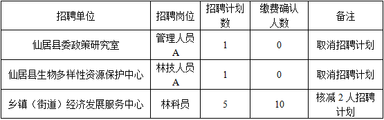 2015浙江仙居縣事業(yè)單位招聘取消或核減招聘計(jì)劃
